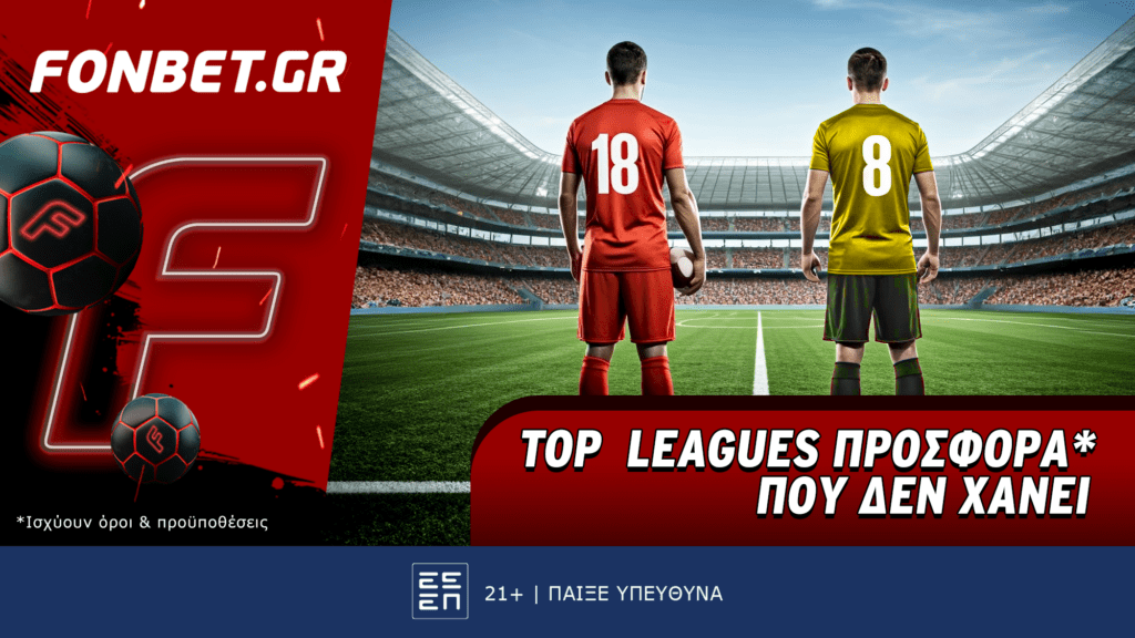 Μπορείτε κι εσείς να επωφεληθείτε από την προσφορά* της FonbetσταTopLeagues. Μάλιστα, αφορά τόσο τα pregame στοιχήματα, όσο και αυτά στο live. Θα μπορέσεις να διεκδικήσεις την κορυφή απέναντι στους άλλους παίκτες; Μπαίνεις στη νέα πλατφόρμα της Fonbet, παίζεις και κερδίζεις μοναδικά έπαθλα*.